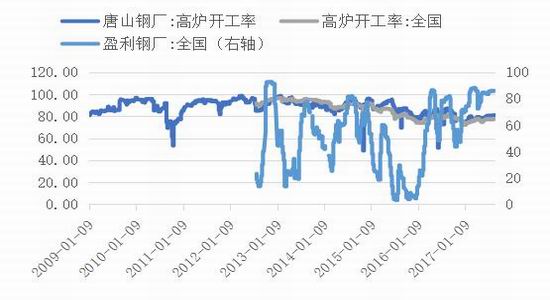 三、钢厂高炉满负荷生产 刚性需求对价格形成短期支撑