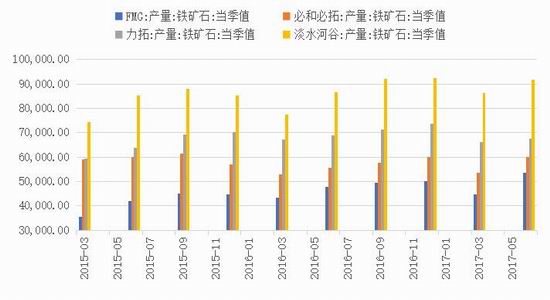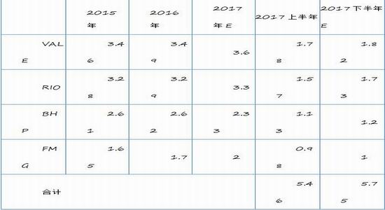 2017年铁矿石产能释放高峰年,预计含中国在内的铁矿石供应增长8000万吨以上,其中下半年四大矿山累计产量增长3000万吨,罗伊山增量1000-1500万吨,合计4000-4500万吨增量,且60%以上高品矿占比继续增长。