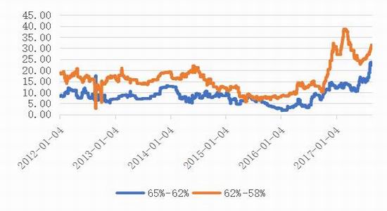 综上所述,钢厂满负荷生产对铁矿石形成了刚性需求,从而对价格形成支撑,但成材现货价格陷入高位震荡,铁矿石继续强势上涨难以为继,而下半年高品位铁矿石供应有进一步增长空间,且取暖季钢厂高炉限产50%对铁矿石需求有极大影响,导致铁矿石需求下降4500-8000万吨,具体下降幅度视环保政策执行力度而定,